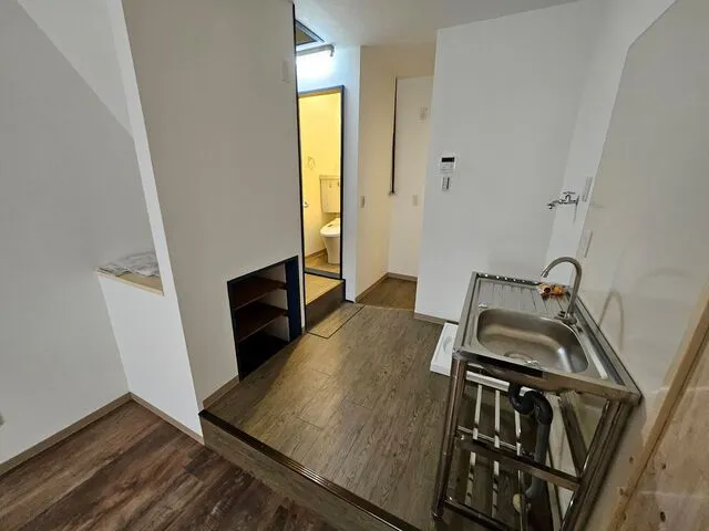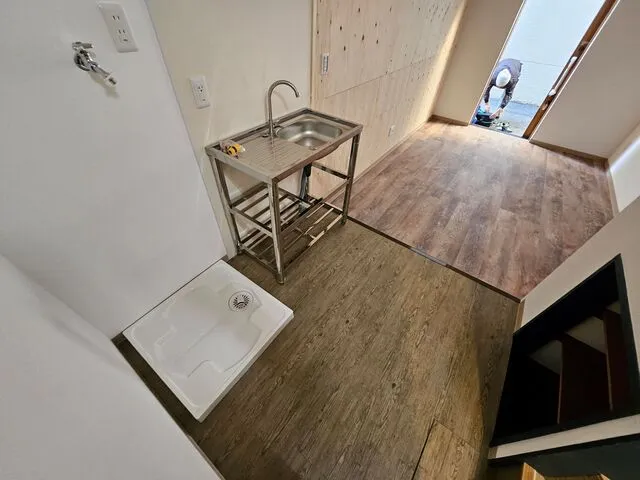 内装フロアータイル仕上げ・簡易シンク新設・洗濯パン新設