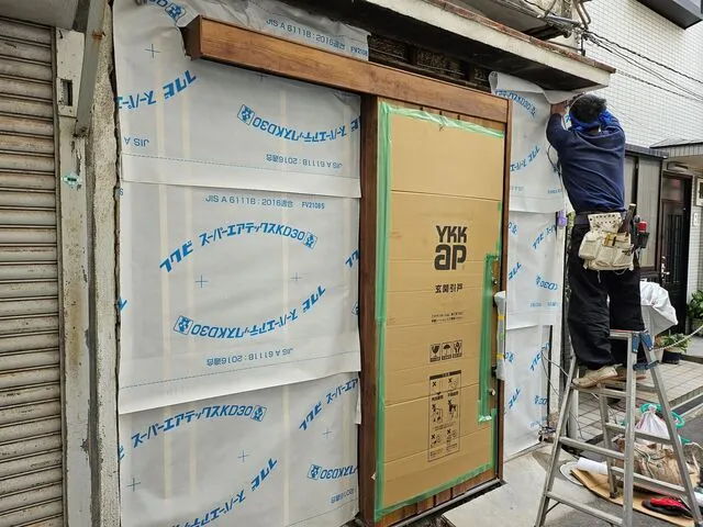 玄関サッシ取り付け