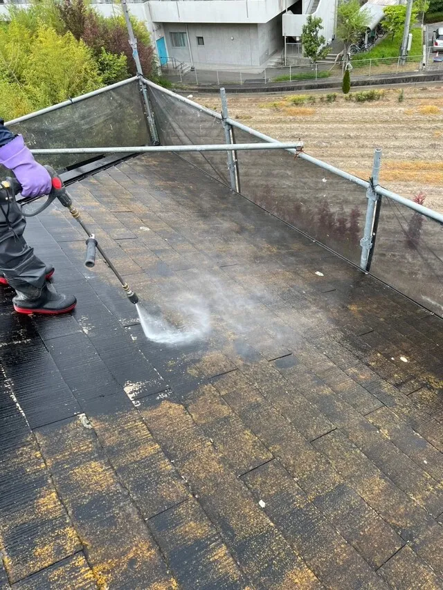 コロニアル屋根シリコン塗装・外壁ハイブリッドシリコン塗装・シール一部補修・高圧洗浄・ポリカ波板張り替え