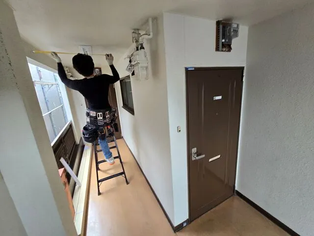 共用部改修工事・長尺シート・内装クロス・フロアータイル張り・キッチン交換・給湯器交換・洗面台交換・電気設備交換・外壁塗装・防水工事・シーリング工事・板金工事・大工工事・設備工事・電気工事・集合ポスト交換・ルームプレート新設・ハウスクリーニング等々・・・