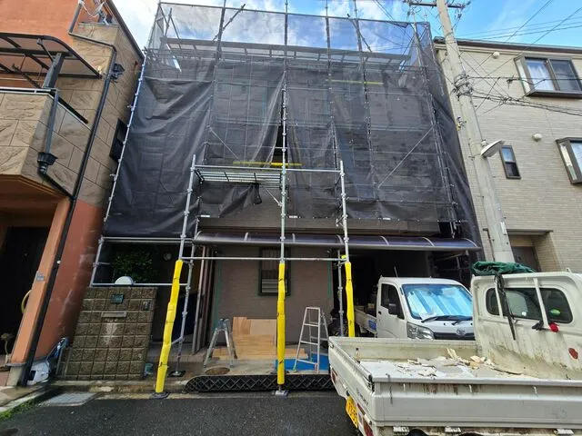 足場工事・シーリング工事・システムバス・洗面台・システムキッチン・トイレ新設・3階トイレ増設・家具工事・手洗い新設・間取り変更・洗濯パン・内装建具・ダウンライト照明・電気工事一式・その他