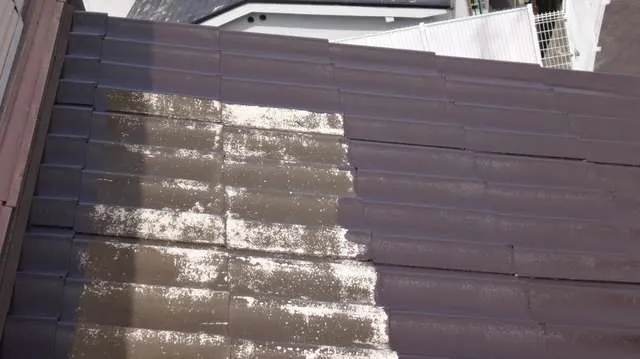 スレート瓦の防水塗装工事です! スレートは手入れせずに放置しておくと瓦の含水率が徐々に増えて劣化し