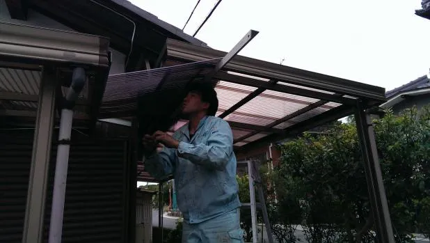 古い割れた波板を撤去 新しく張り替えました。